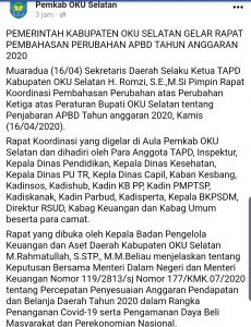 BerandaKegiatanKADISDUKCAPIL OKU SELATAN IKUTI RAPAT PEMBAHASAN PERUBAHAN APBD TAHUN 2020