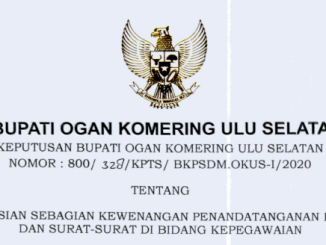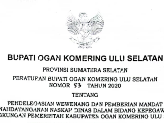 PERBUB TENTANG PENDELEGASIAN WEWENANG DAN PEMBERIAN MANDAT PENANDATANGANAN NASKAH DINAS DALAM BIDANG KEPEGAWAIAN DI LINGKUNGAN PEMERINTAH KABUPATEN OKU SELATAN Perbub No. 23 Tahun 2020 tentang Pendelegasian Wewenang
