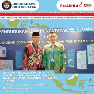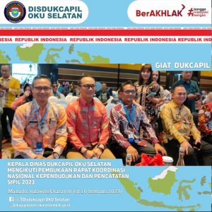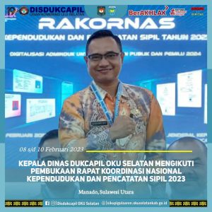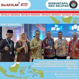 08/02/2023 – Kadin Dukcapil OKU Selatan Mengikuti Pembukaan Rapat Koordinasi Kependudukan Dan Pencatatan Sipil tahun 2023 di Manado, Sulawesi Utara dengan Mengusung Tema : “Digitalisasi Administrasi Kependudukan Untuk Pelayanan Publik Dan Pemilihan Umum 2024”