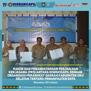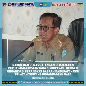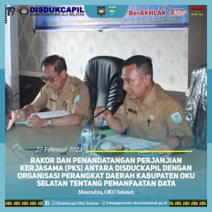 SEKDA KABUPATEN OKU SELATAN PIMPIN RAPAT KOORDINASI DAN PENANDATANGANAN PERJANJIAN KERJASAMA PEMANFAATAN DATA KEPENDUDUKAN