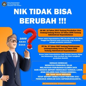 Dengan demikian, meskipun penduduk telah melakukan perubahan elemen data dari biodata seperti mengubah tanggal lahir, jenis kelamin dan pindah domisili, _*NIK tidak akan berubah*_ dan tetap seperti semula saat pertama kali penduduk direkam data kependudukannya.